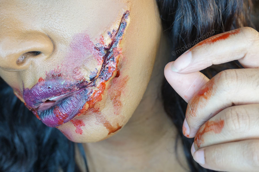 So, today I experimented with scar wax! This was scar wax that made myself! Im very proud of myself… I think my look turned out pretty cool! Only took maybe 15mins tops! I always go for scarey looks for Halloween, I mean, Its Halloween!!