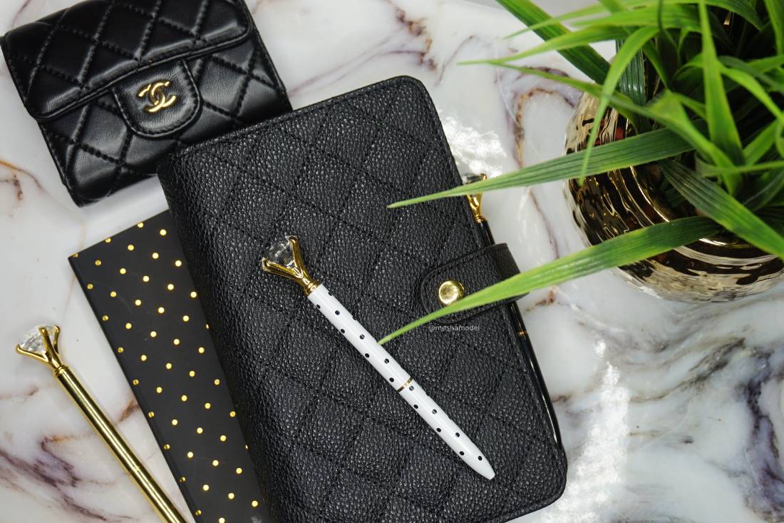 This is my latest planner to add to my collection. I really love the simplicity of it and its classic chic look. The quilted faux leather looks really lux.This planner pairs perfectly with my other daily accessories. I actually ordered this planner from Amazon. It was super in-expensive, I only paid roughly $15 for it. Though I have seen this planner on other sites for almost triple price.