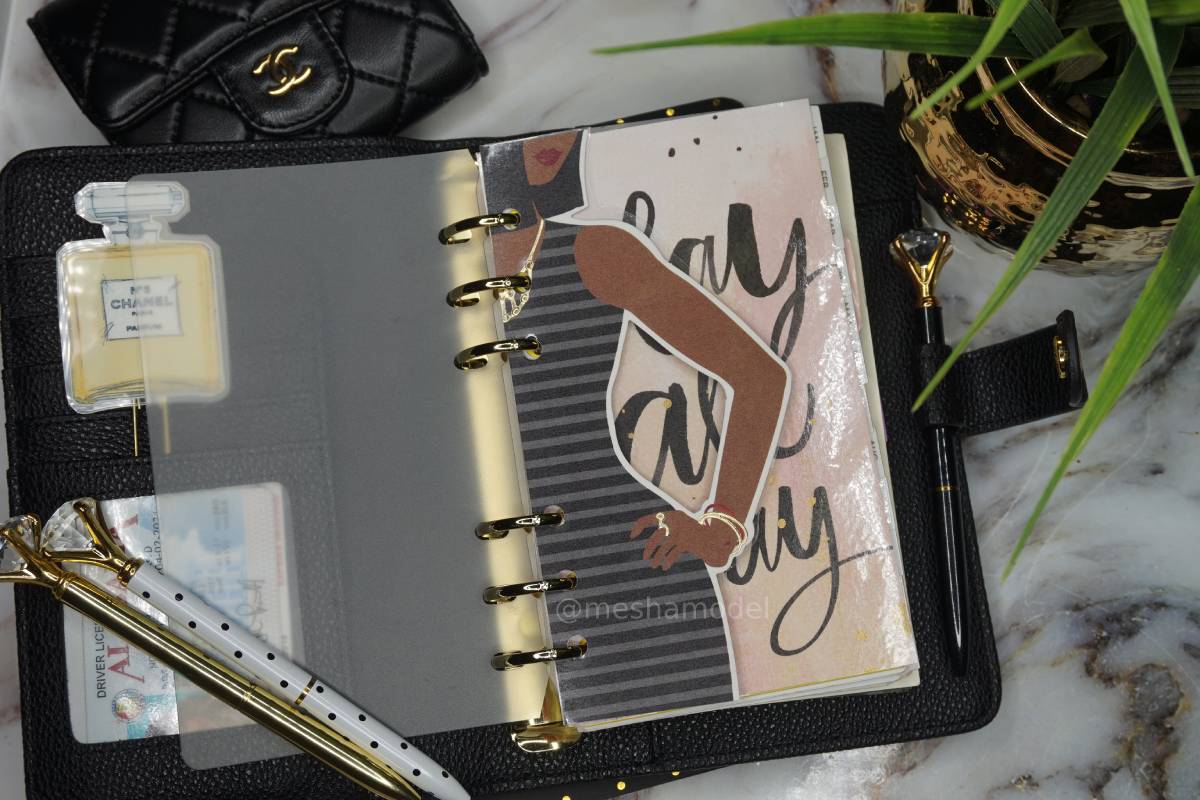 For the most part, as part of living a “Boujee On A Budget” lifestyle, I make my own dashboards and cute planner décor. I often use greeting cards (because they are on heavy stock) and cut them to size to make custom dashboards. Though you can use whatever your heart desires as a dashboard. Customizing and writing in your planner is very relaxing and satisfying.